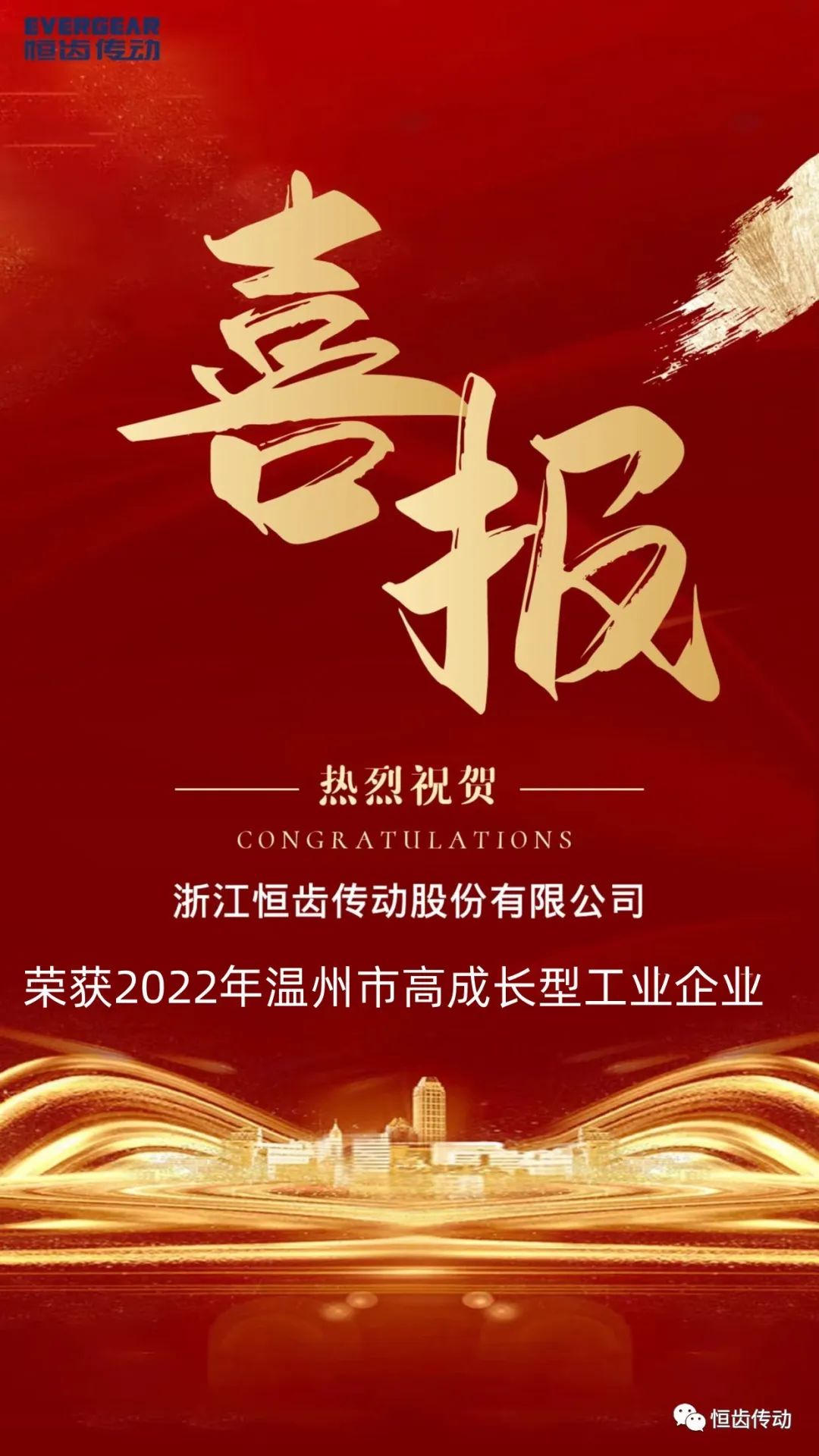 喜報|熱烈祝賀恒齒傳動榮獲2022年“溫州市高成長型工業企業”